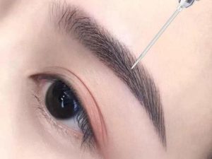 - Vi sợi Microblading: Phương pháp điêu khắc chân mày ngang này sử dụng dụng cụ điêu khắc cầm tay để khắc vẽ ra từng sợi lông thật tỉ mỉ theo đúng chiều lông mọc, giúp chân mày trông dày và sắc nét hơn.